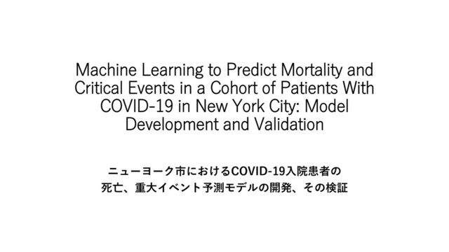 Machine Learning to Predict Mortality and Critical Events in a Cohort of Patients With COVID-19 in New York City: Model Development and Validation