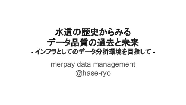 水道の歴史からみる データ品質の過去と未来 - インフラとしてのデータ分析環境を目指して - merpay data management @hase-ryo
