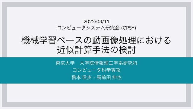電子情報通信学会研究会のコンピュータシステム研究会 (CPSY) での発表資料です (2022/03/11)。
