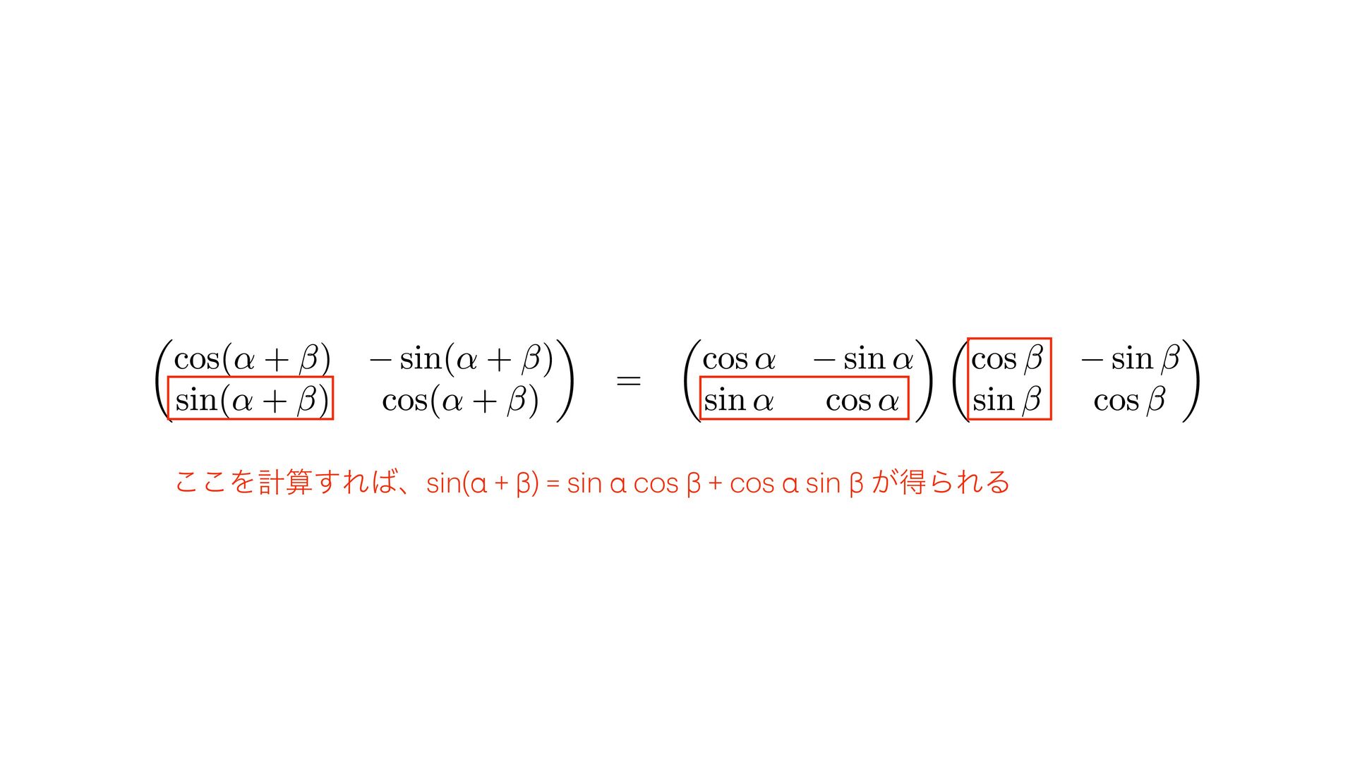 ͜͜Λܭࢉ͢Εɺsin(α + β) = sin α cos β + cos