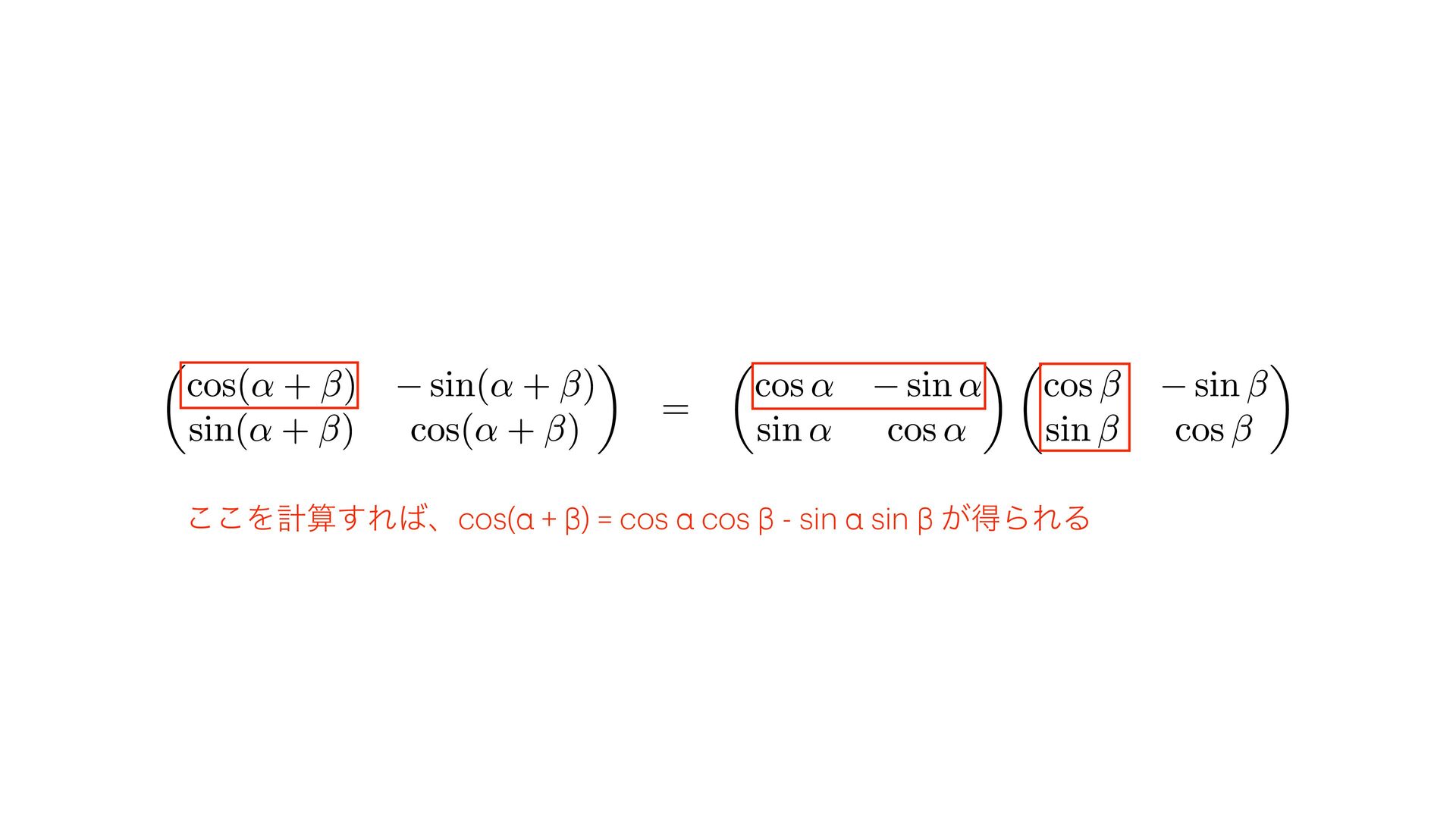 ͜͜Λܭࢉ͢Εɺcos(α + β) = cos α cos β - sin