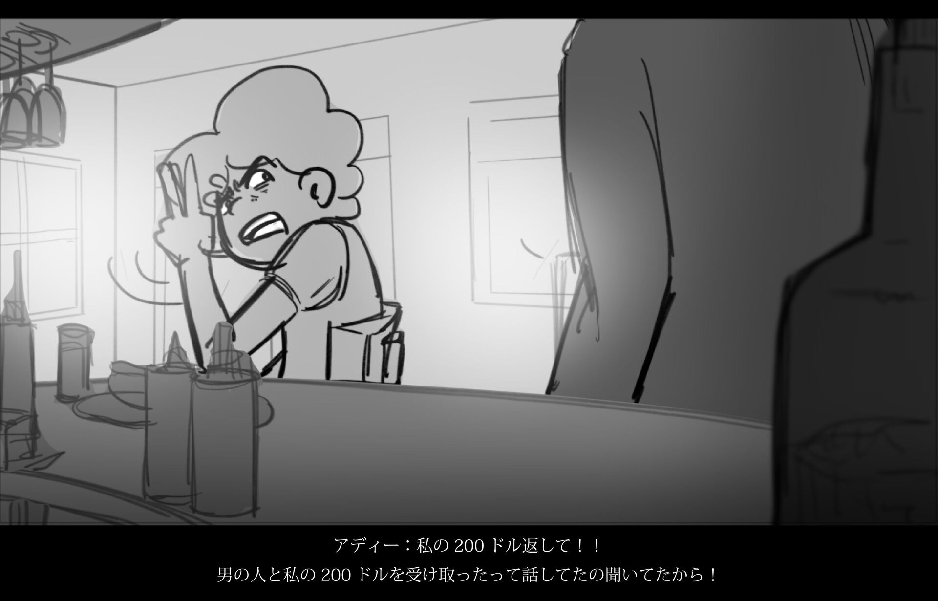 アディー:私の 200 ドル返して!! 男の人と私の 200 ドルを受け取ったって話してたの聞いてたから!