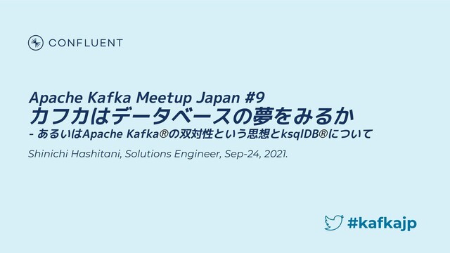 not be reproduced in any manner without the express written permission of Confluent, Inc. Hello! My Name is: 52 創業: 2014 CEO: Jay Kreps 日本オフィス2021年開設 Engineers@Japan Office Ayumu Aizawa Solutions Engineer Shinichi Hashitani Solutions Engineer Keigo Suda Solutions Architect TBD Support Engineer 今後のKafkaコミュニティに 対する活動に向けた参考とな ります。 お手数ですが是非アンケート のご回答をお願い致します!