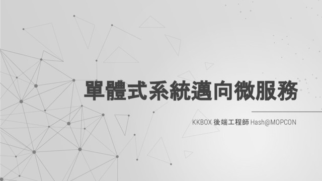 KKBOX 後端工程師 Hash@MOPCON 單體式系統邁向微服務