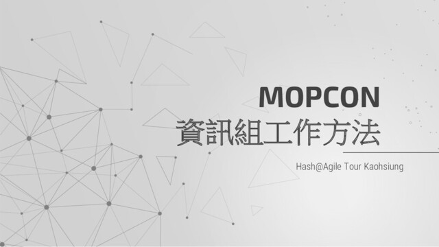 MOPCON 濁水溪以南最大研討會對於大家應該都不陌生,但大家知道經營研討就跟經營公司、團隊是非常類似的,在全遠端工作的團隊,我們又是如何達到快速且流暢的開發,除了快速開發之外,也同時要能夠幫助團隊中其他的成員更為 Work Smark ,我們是如何做到的?