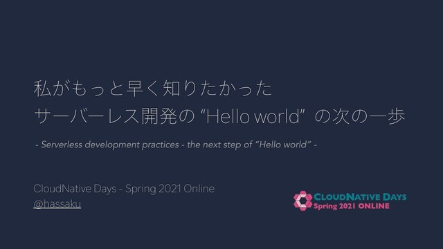 Session Link: 私がもっと早く知りたかったサーバーレス開発の "Hello World" 次の一歩 / CloudNative Days Spring 2021 Online