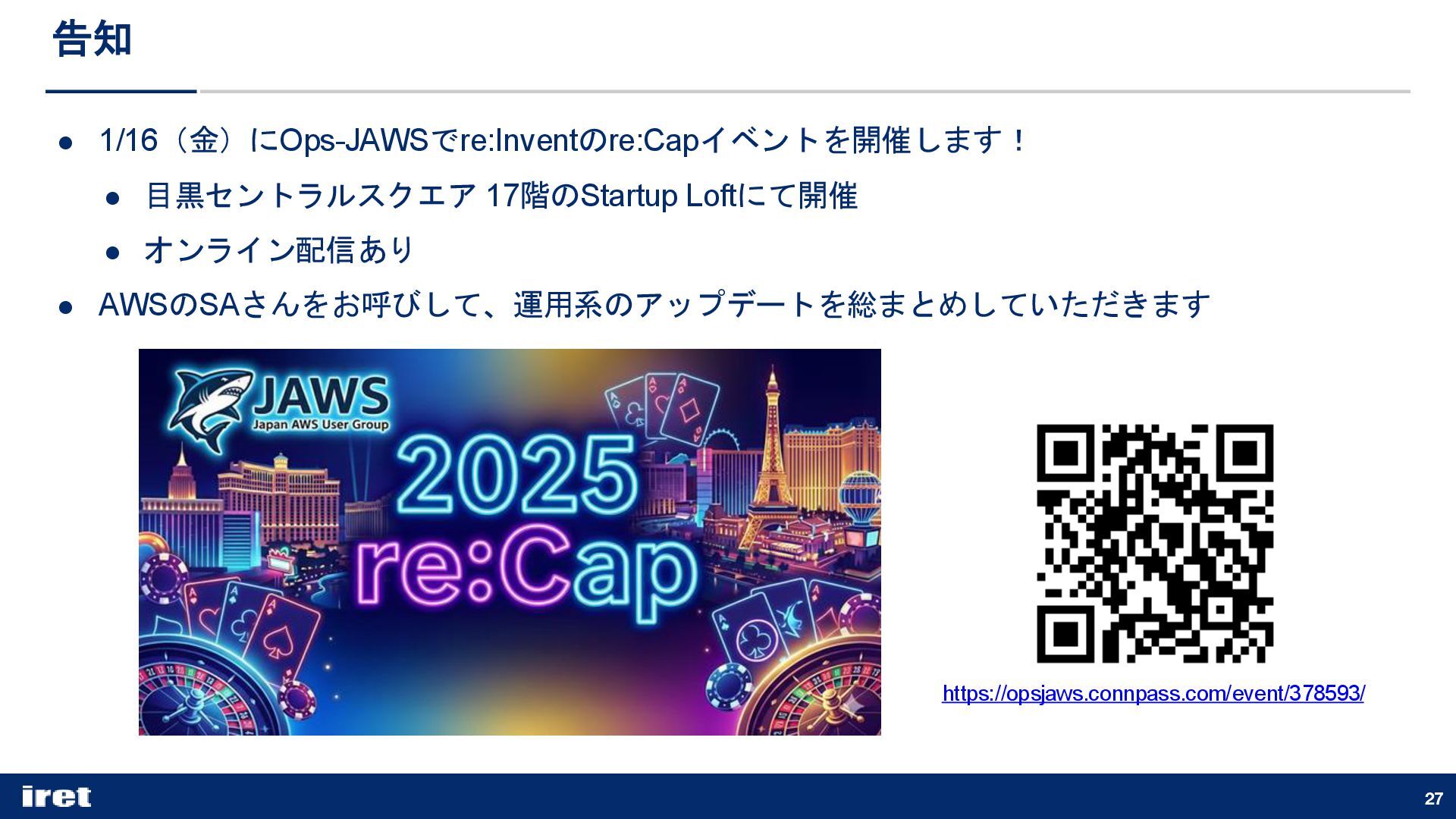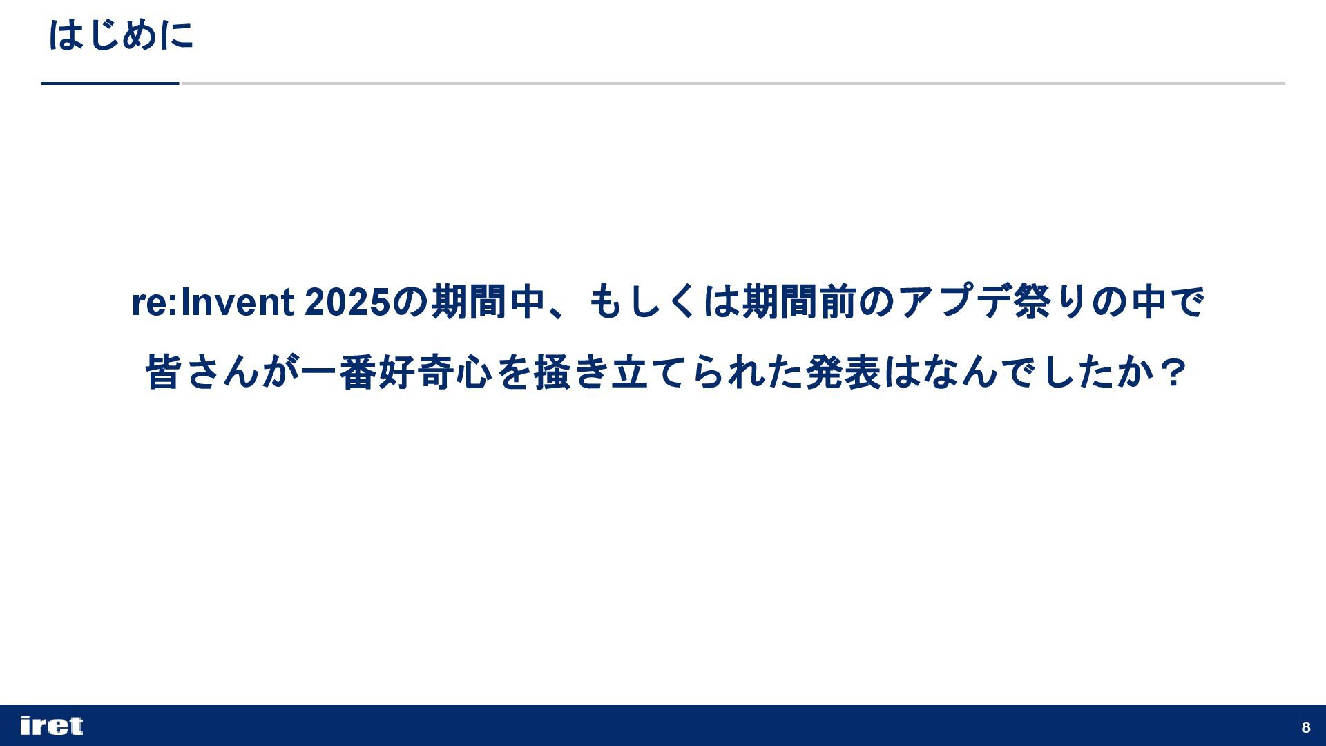 AWS Ambassador/AWS Top Engineer向けのre:Capイベントで利用した資料です