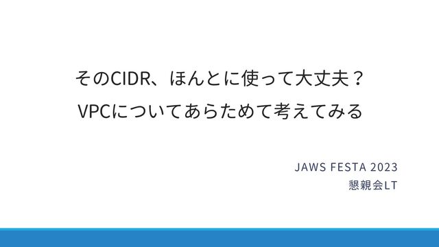 そのCIDR、ほんとに使って大丈夫? VPCについてあらためて考えてみる JAWS FESTA 2023 懇親会LT