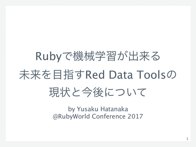 RubyͰػցֶश͕ग़དྷΔ ະདྷΛࢦ͢Red Data Toolsͷ ݱঢ়ͱࠓޙʹ͍ͭͯ by Yusaku Hatanaka @RubyWorld Conference