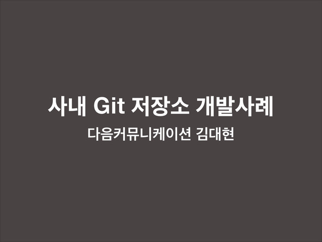 DevOn2013 둘째날, 다음기술세션 "사내 Git 저장소 개발 사례" 발표자료. 사내에 Git을 도입하는 과정에서 배우게 된 조직내 변화에 대한 접근 방법 공유.