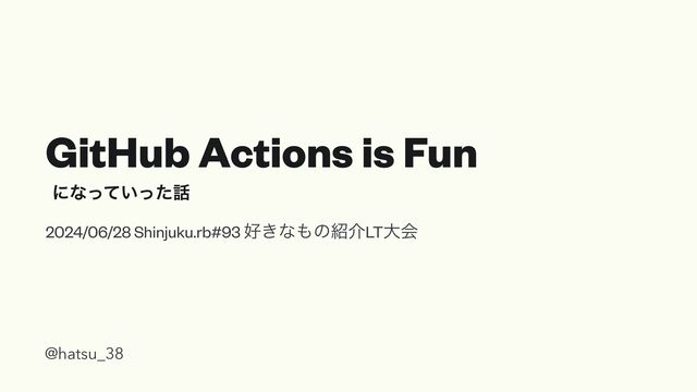 GitHub Actions is Fun ʹͳ͍ͬͯͬͨ 2024/06/28 Shinjuku.rb#93 ͖ͳͷհLTେձ @hatsu_38