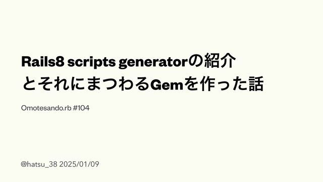 Rails8 scripts generatorͷհ ͱͦΕʹ·ͭΘΔGemΛ࡞ͬͨ Omotesando.rb #104 @hatsu_38 2025/01/09