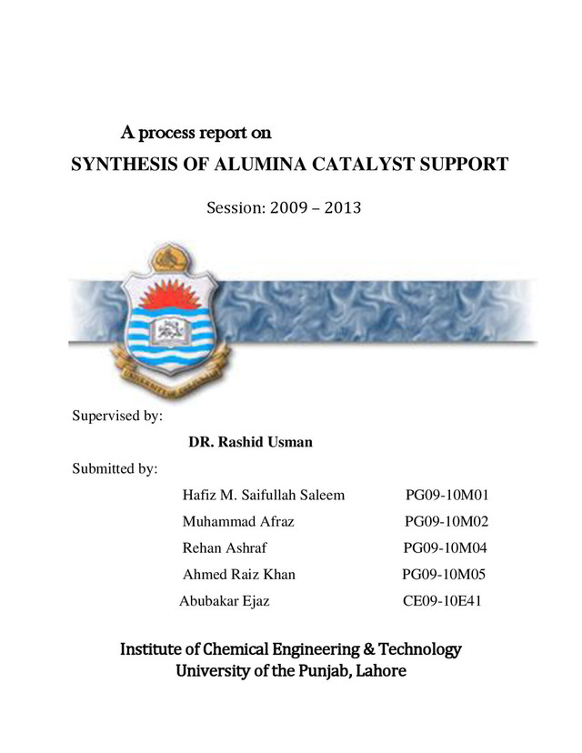 1. A process report on SYNTHESIS OF ALUMINA CATALYST SUPPORT Session: