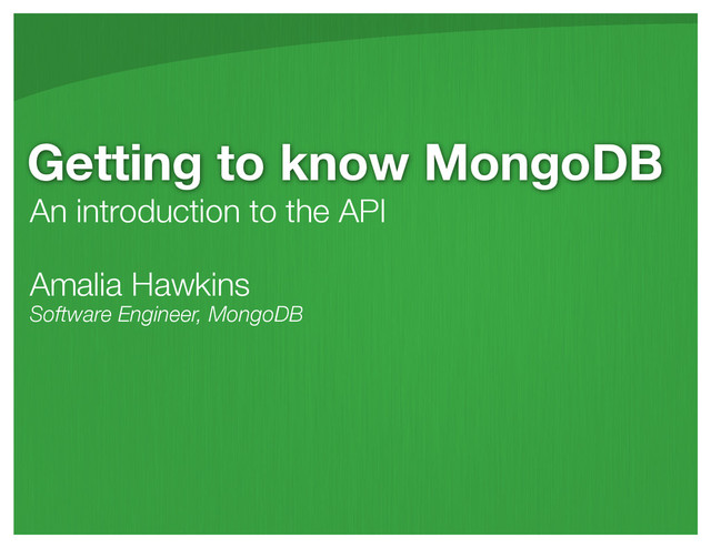 This is the slide deck I use to introduce hackers to MongoDB when I have 2-5 minutes and I'm presenting at a hackathon. Hat tip to @samantharitter for the slide deck base, since all the wonderful design and most of the content is hers.