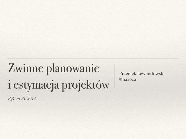 Zapewne na niektóre powyższe pytania odpowiesz twierdząco. W prezentacji postaram się pokazać w jaki sposób można uniknąć takich sytuacji. Bazując na własnym doświadczeniu opiszę najczęstsze błędy już podczas wstępnej estymacji, które mogą być przyczyną przyszłych problemów. Opowiem też w jaki sposób planować pracę nad projektami przy ciągle zmieniających się wymaganiach i otoczeniu, aby klient i zespół wzajemnie się szanowali oraz ich współpraca była bardziej efektywna.