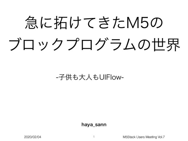 2020/02/04 M5Stack Users Meeting Vol.7 ٸʹ͚͖ͯͨ.ͷ ϒϩοΫϓϩάϥϜͷੈք ࢠڙେਓ6*'MPX 1 IBZB@TBOO