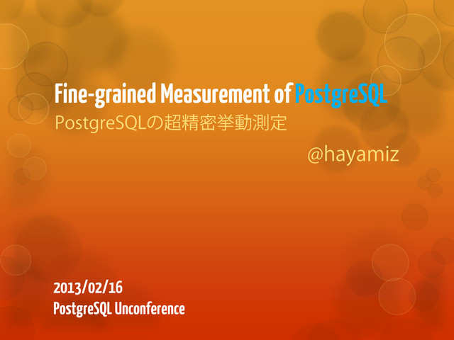 Fine-grained Measurement of PostgreSQL 2013/02/16 PostgreSQL Unconference