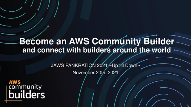 AWS Community Builder • https://dev.to/aws-builders/how-to-become-an-aws-community-builder-2m79 • AWS Community Builders Program • https://dev.to/aws-builders/aws-community-builders-program-6kf • Why I Became an AWS Community Builder • https://dev.to/aws-builders/why-i-become-an-aws-community-builder-4j6c • AWS Community Builders (Portuguese) • https://dev.to/aws-builders/aws-community-builders-3mf5 • How to become an AWS Community Builder in Nihongo(Japanese) • https://dev.to/aws-builders/aws-community-builders-4fd3 19