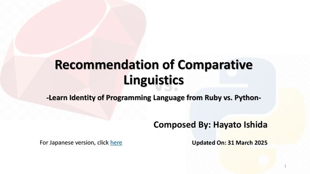 This time, I compare Ruby, my main language, with Python to clarify the common features and differences, which is expected to pull a trigger to know more about what Ruby is.