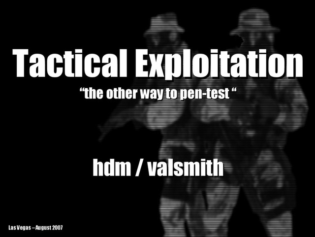 This presentations covers an assortment of penetration testing techniques and was originally presented at Black Hat USA in 2007. This was co-presented by HD Moore and valsmith.