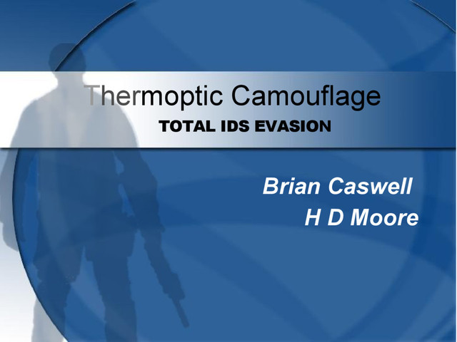 This presentation describes a number of ways to bypass intrusion detection systems and was originally presented at Black Hat USA 2006. This was co-presented by HD Moore and Brian Caswell.