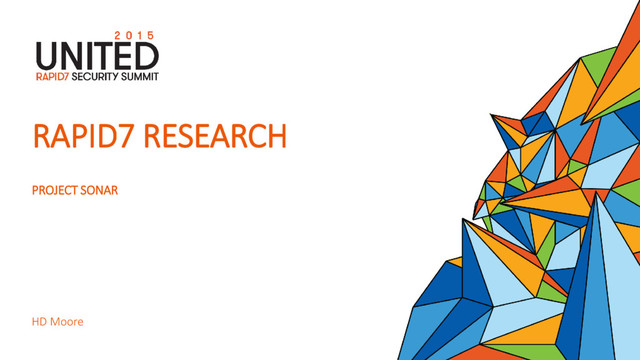 and public DNS records • 1.0.0.0 to 223.255.255.255 • Exclude reserved & private ranges • Exclude our opt-out list • Scan about 3.7 billion IPv4 addresses • Scans run sequentially, from a single server • Typically span Monday - Friday * Unless you opted out, see https://sonar.labs.rapid7.com/