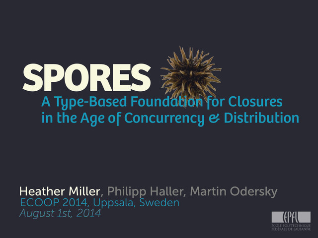 1. SPORES ECOOP 2014, Uppsala, Sweden August 1st, 2014 Heather Miller