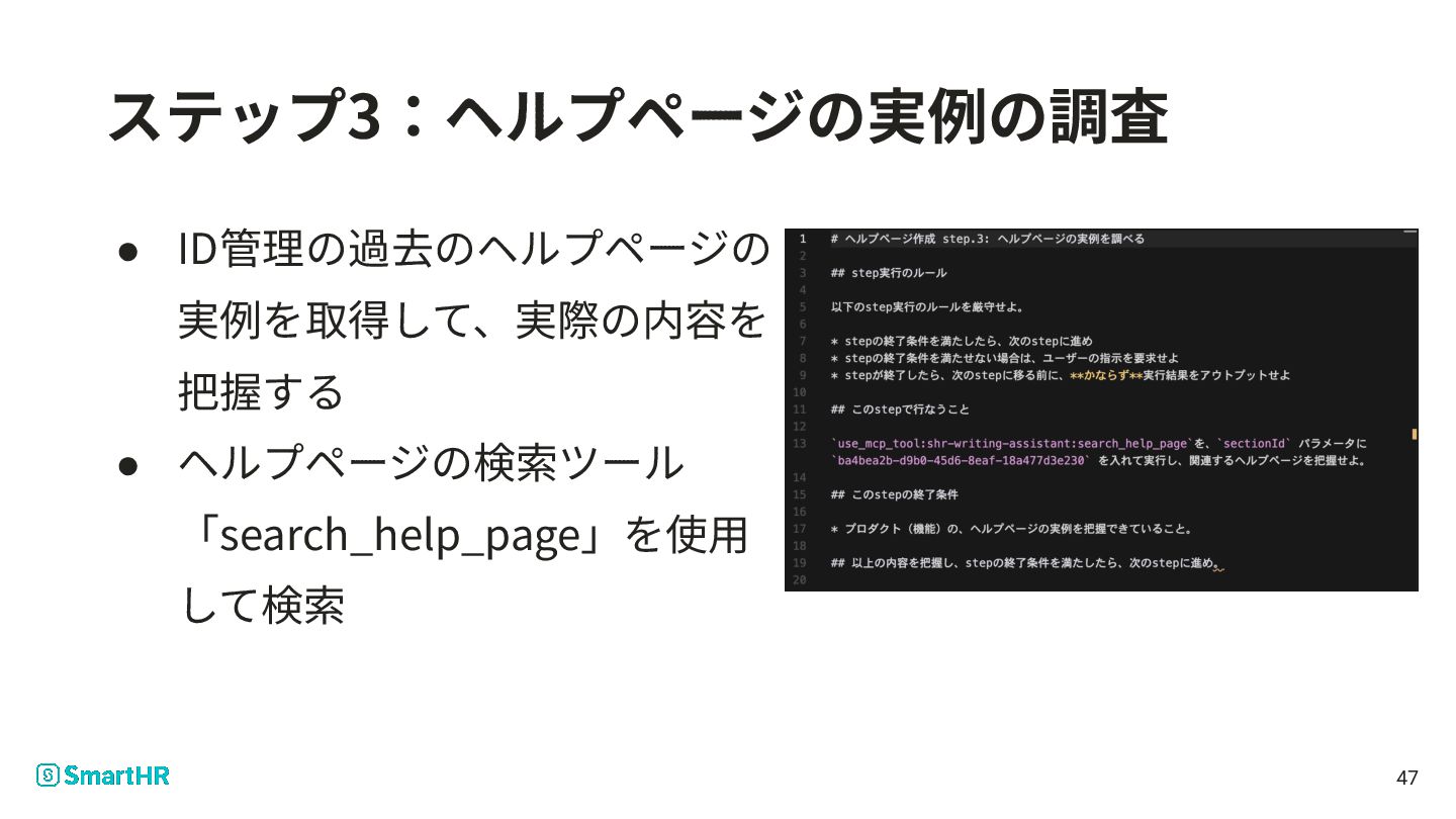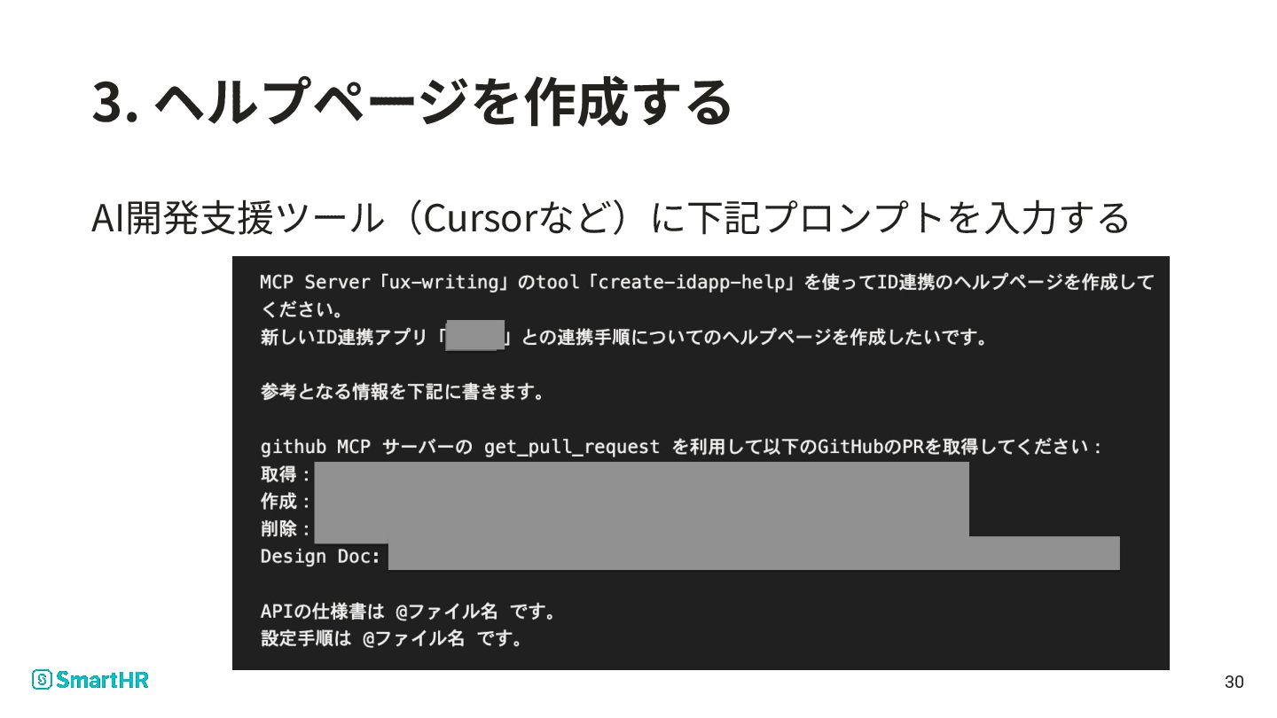 2. お話しする前に SmartHR Tech Blogで書いた記事がベースです • MCP Serverのツールを使って、AIにヘルプページを書いても らう取り組みのお話です • MCP