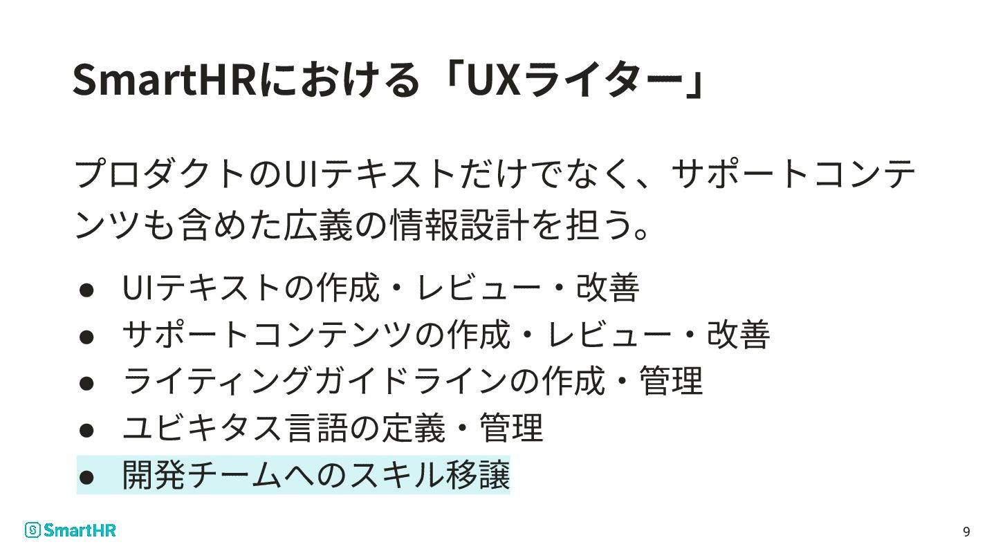 9. SmartHRの「UX Writing MCP Server」 • すでにUXライターの桑野さんが作成済 ◦ 詳しくはLINE Technical Writing
