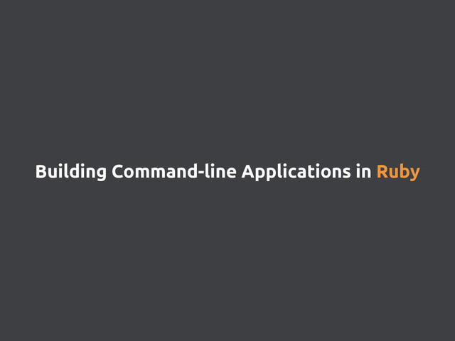 Slides that accompany a lightening talk from RedSnake Philly 2013 [0] on building command-line applications in Ruby with Thor [1], Cucumber [2], Aruba [3], and Riak CS [4]. The example Riak CS command-line application used in the presentation can be found here [5].