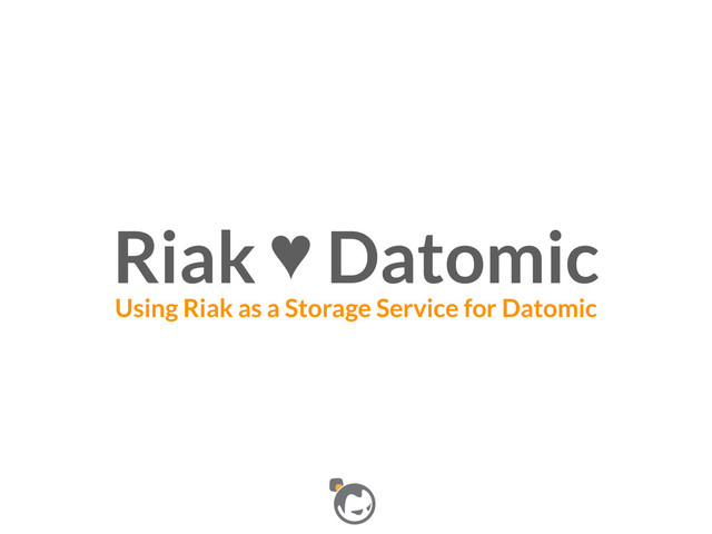 This deck explores the architecture of Datomic and discusses why Riak is an attractive storage service for it. It also focuses on specifics around enabling Riak as a storage service for Datomic.