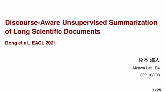 EACL 2021 杉本 海人 Aizawa Lab. B4 2021/03/08 1 / 25