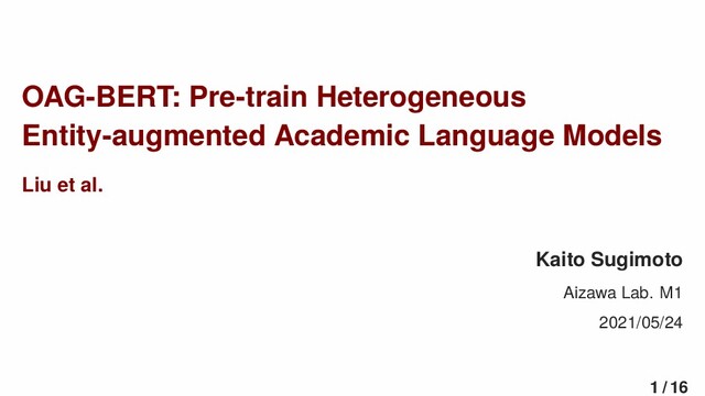 Kaito Sugimoto Aizawa Lab. M1 2021/05/24 1 / 16