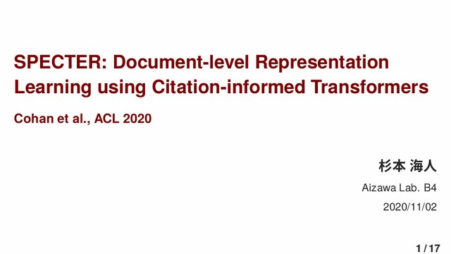 ACL 2020 杉本 海人 Aizawa Lab. B4 2020/11/02 1 / 17