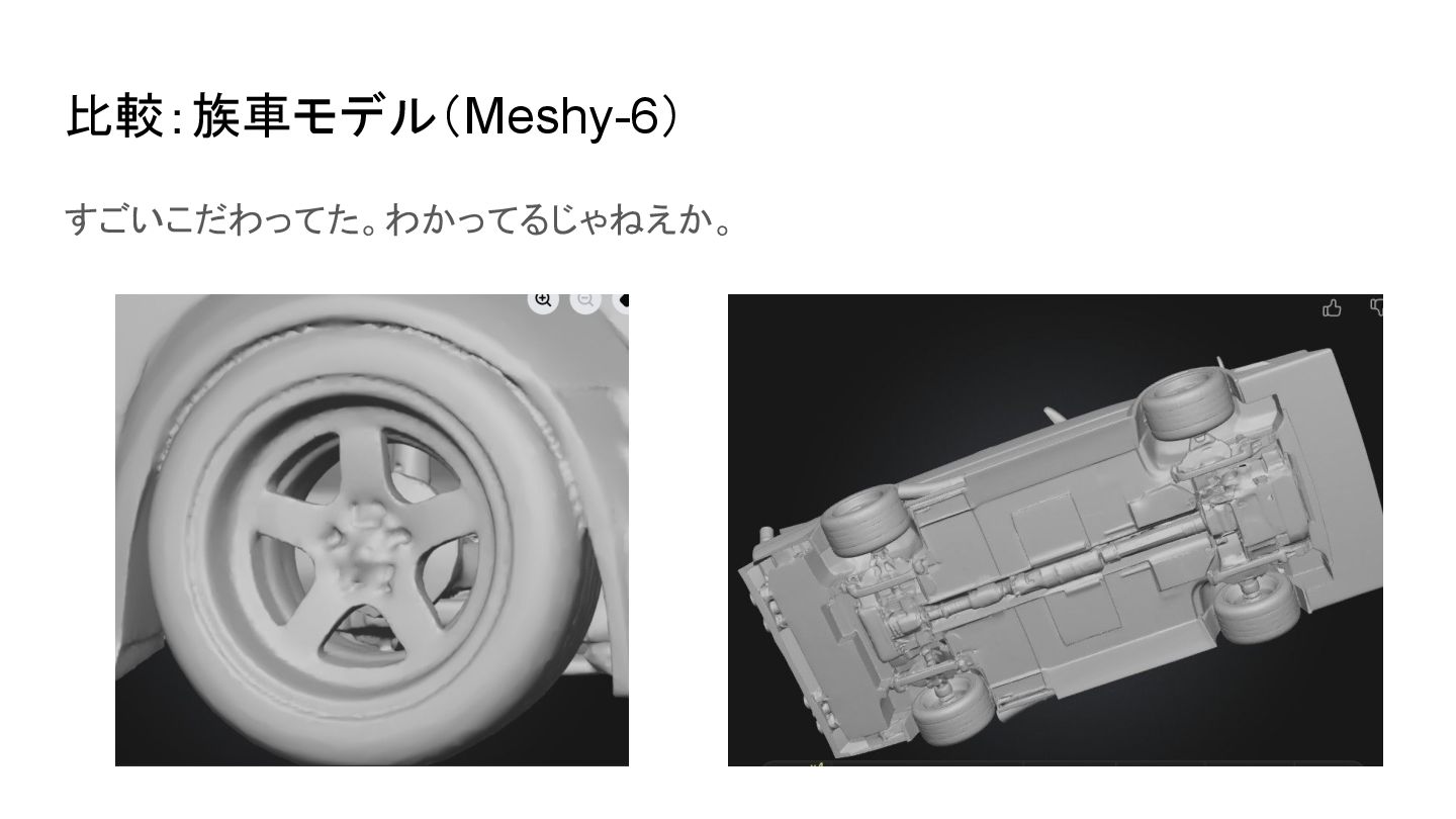 比較:族車モデル(Meshy-6) すごいこだわってた。わかってるじゃねえか。