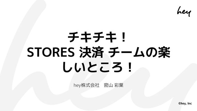 ©hey, Inc hey株式会社 密山 彩葉 チキチキ! STORES 決済 チームの楽 しいところ!