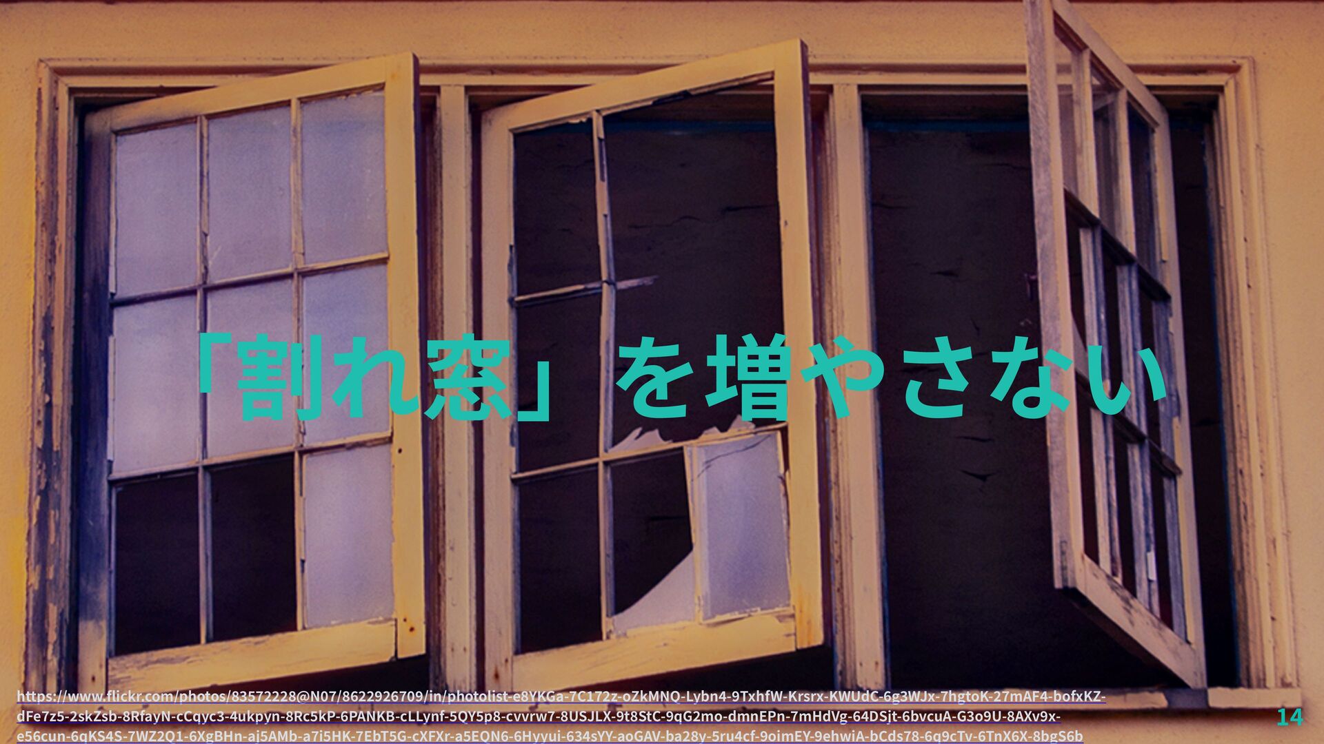© - BASE, Inc. 「割れ窓」を増やさない https://www.flickr.com/photos/ @N / /in/photolist-e YKGa-