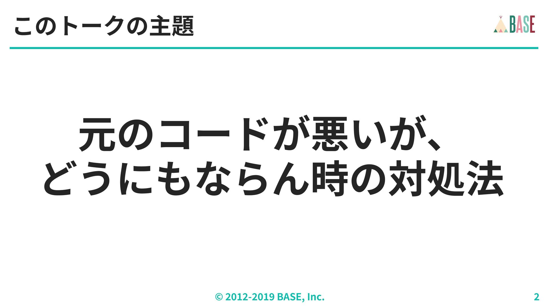 © - BASE, Inc. 元のコードが悪いが、 どうにもならん時の対処法 このトークの主題