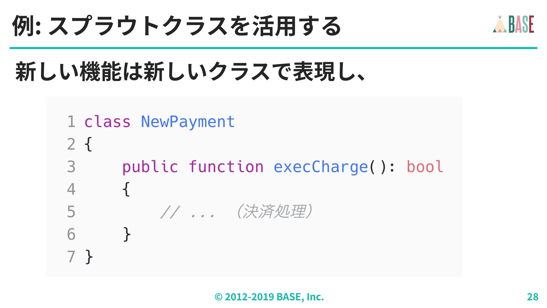 © - BASE, Inc. 例: スプラウトクラスを活⽤する 新しい機能は新しいクラスで表現し、