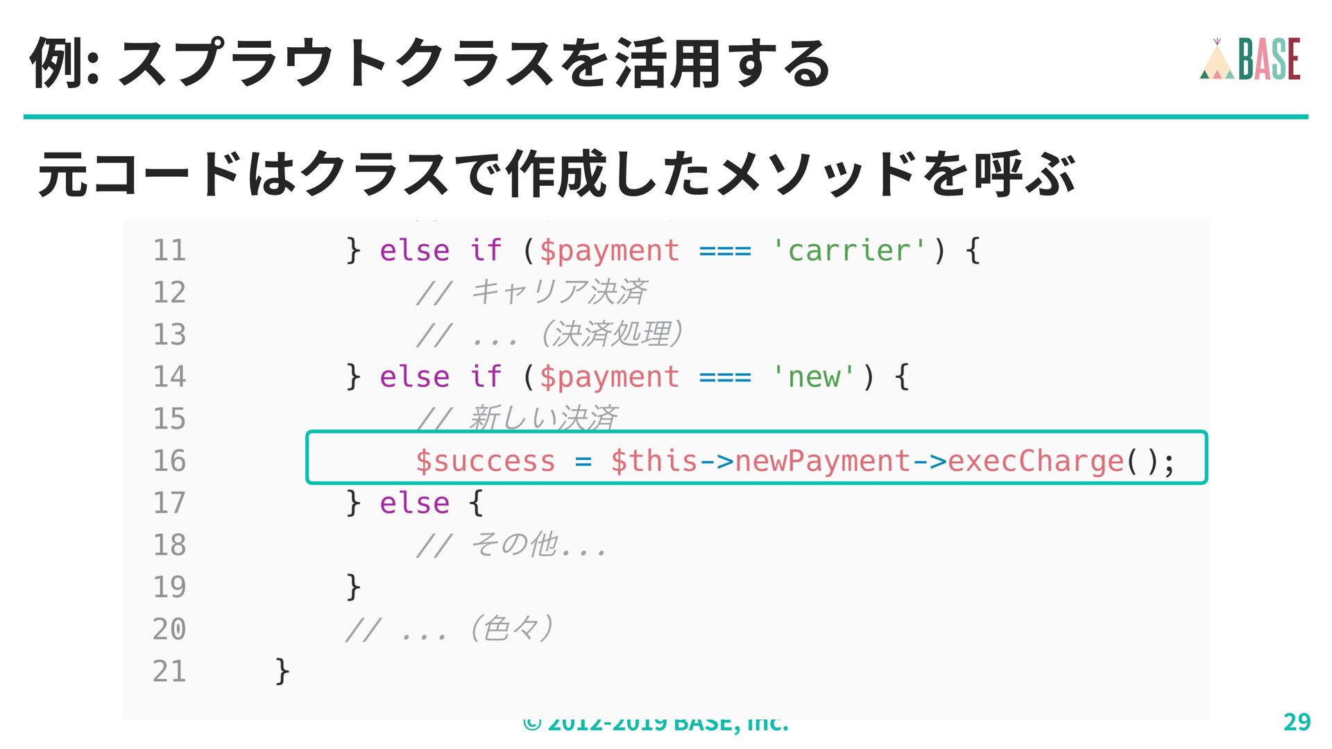 © - BASE, Inc. 例: スプラウトクラスを活⽤する 元コードはクラスで作成したメソッドを呼ぶ