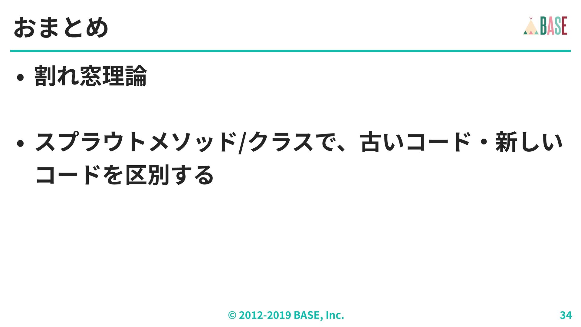 © - BASE, Inc. おまとめ • 割れ窓理論 • スプラウトメソッド/クラスで、古いコード‧新しい コードを区別する