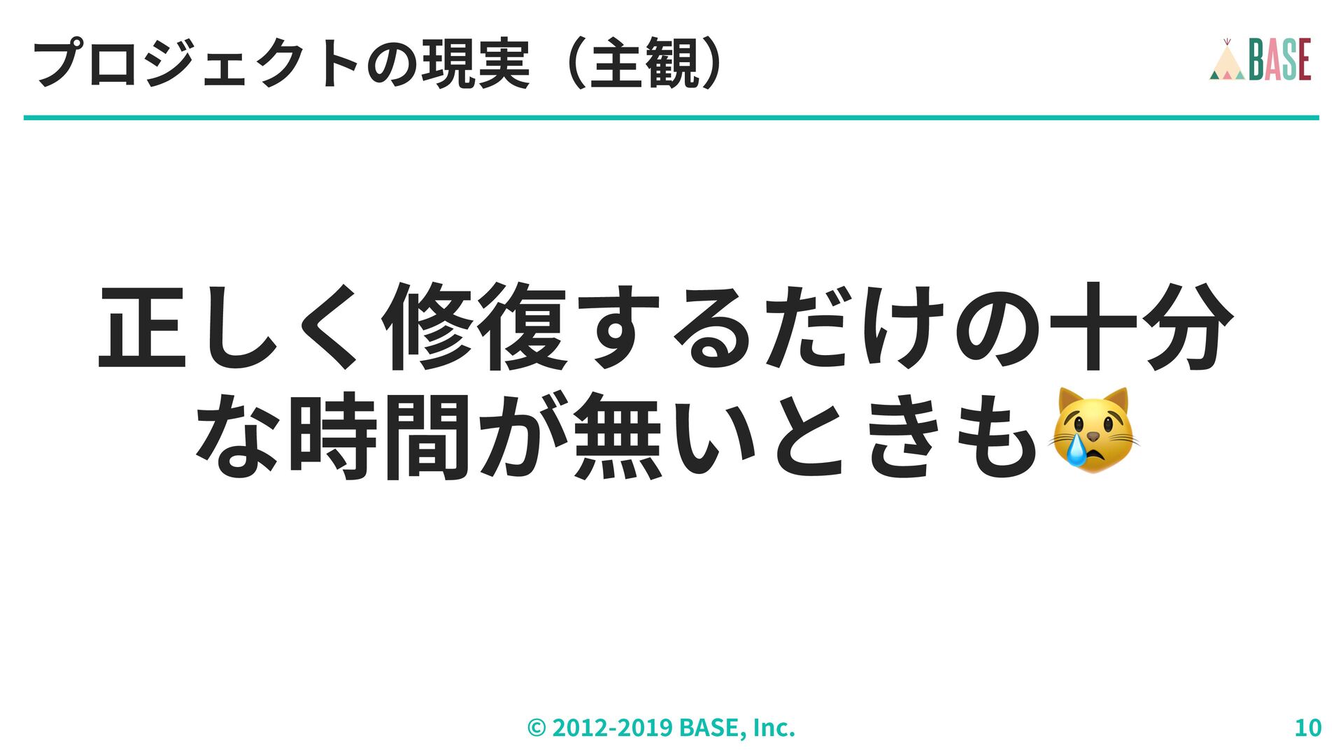 © - BASE, Inc. 正しく修復するだけの⼗分 な時間が無いときも プロジェクトの現実(主観)