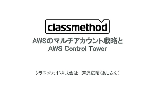 AWSのマルチアカウント戦略と AWS Control Tower クラスメソッド株式会社 芦沢広昭(あしさん) 1