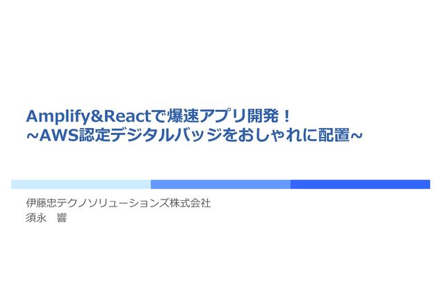 Amplify&Reactで爆速アプリ開発! ~AWS認定デジタルバッジをおしゃれに配置~ 伊藤忠テクノソリューションズ株式会社 須永 響