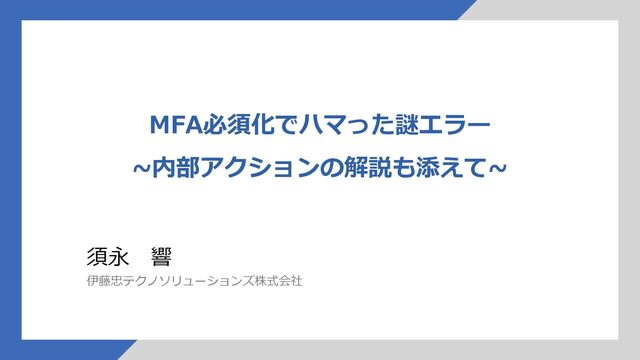 MFA必須化でハマった謎エラー ~内部アクションの解説も添えて~ 須永 響 伊藤忠テクノソリューションズ株式会社
