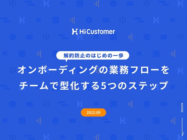 SUCCESS 解約防止のはじめの一歩 オンボーディングの業務フローを チームで型化する5つのステップ 2022.09