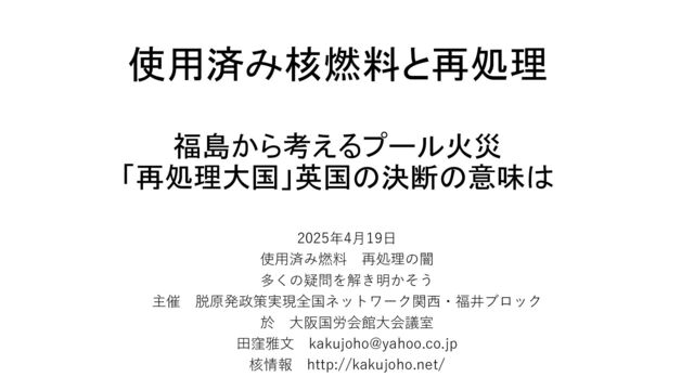 Alvarez, Jan Beyea, Klaus Janberg, Jungmin Kang, Ed Lyman, Allison Macfarlane, Gordon Thompson and Frank N. von Hippel) https://scienceandglobalsecurity.org/archive/sgs11alvarez.pdf 2011年 3.11福島第一4号機プール冷却機能喪失事態 ジルコニウム・プール火災があわや現実に 教訓 「3度目の正直」を招かないために迅速な乾式貯蔵導入で稠密貯蔵解消を! 提唱されているのは、「プールが満杯になった際に古いものを乾式貯蔵に移行を」ではなく (再処理していない米国は以前から、プール貯蔵後、乾式貯蔵) 「5年以上プールで冷やしたものを迅速に乾式貯蔵に移行し、プールの稠密状態の解消を」 参考:同時多発テロ後の使用済み燃料関連論争 火災リスクを減らすため取り出し後5年の使用済み燃料を乾式に 2013. 2. 22 http://kakujoho.net/npp/snf_p_c.html 4