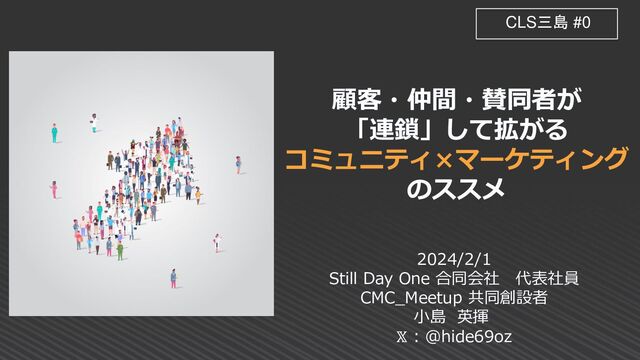 顧客・仲間・賛同者が 「連鎖」して拡がる コミュニティ×マーケティング のススメ 2024/2/1 Still Day One 合同会社 代表社員