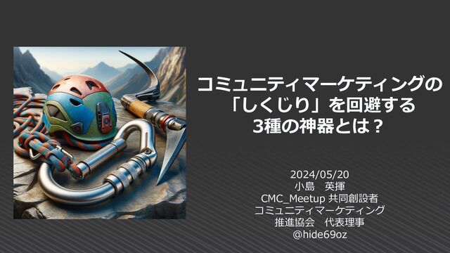 コミュニティマーケティングの 「しくじり」を回避する 3種の神器とは? 2024/05/20 小島 英揮 CMC_Meetup 共同創設者 コミュニティマーケティング 推進協会