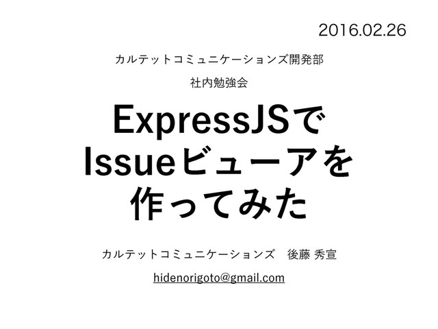 &YQSFTT+4Ͱ *TTVFϏϡʔΞΛ ࡞ͬͯΈͨ Χϧςοτίϛϡχέʔγϣϯζɹޙ౻लએ IJEFOPSJHPUP!HNBJMDPN Χϧςοτίϛϡχέʔγϣϯζ։ൃ෦ ࣾษڧձ
